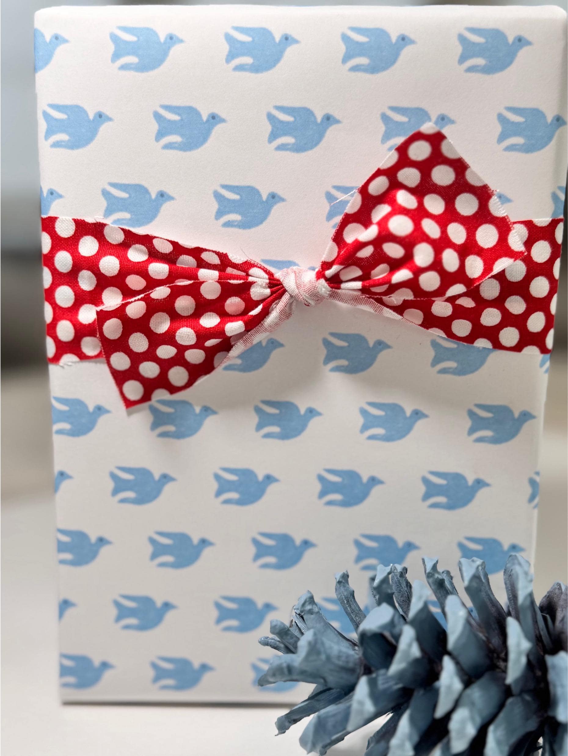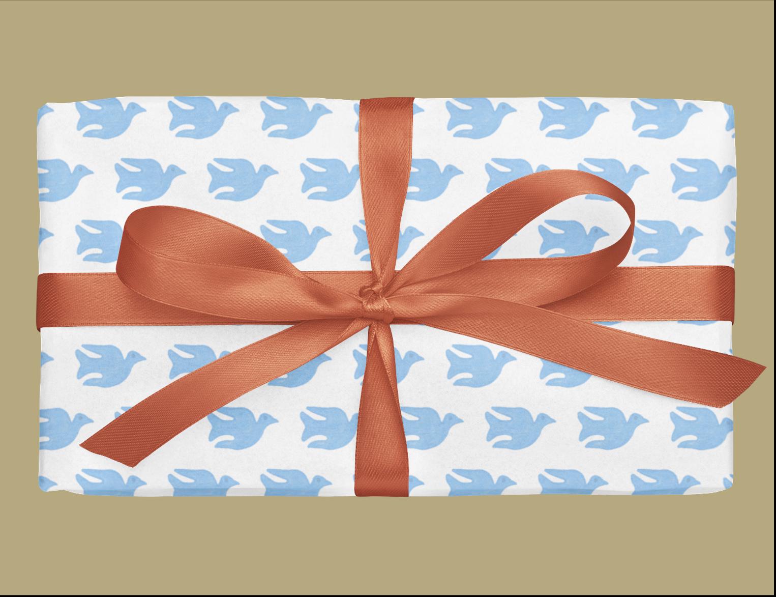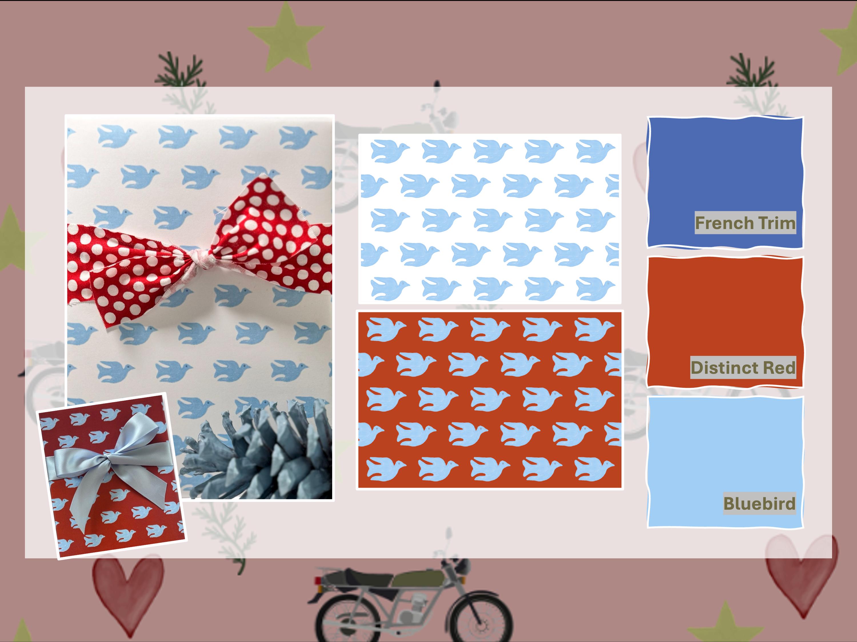 Make your gift-giving special and unique with our hand-sketched patterns and curated solid gift wrap. Our bird pattern in French Trim Blue can be paired with a solid, or used as a stand-alone paper with a nice, textured ribbon. All purchases come with personalized support and color consultation upon request. Our designs are inspired by everyday objects, hand-drawn, digitalized and worked into a simple, yet elegant pattern.