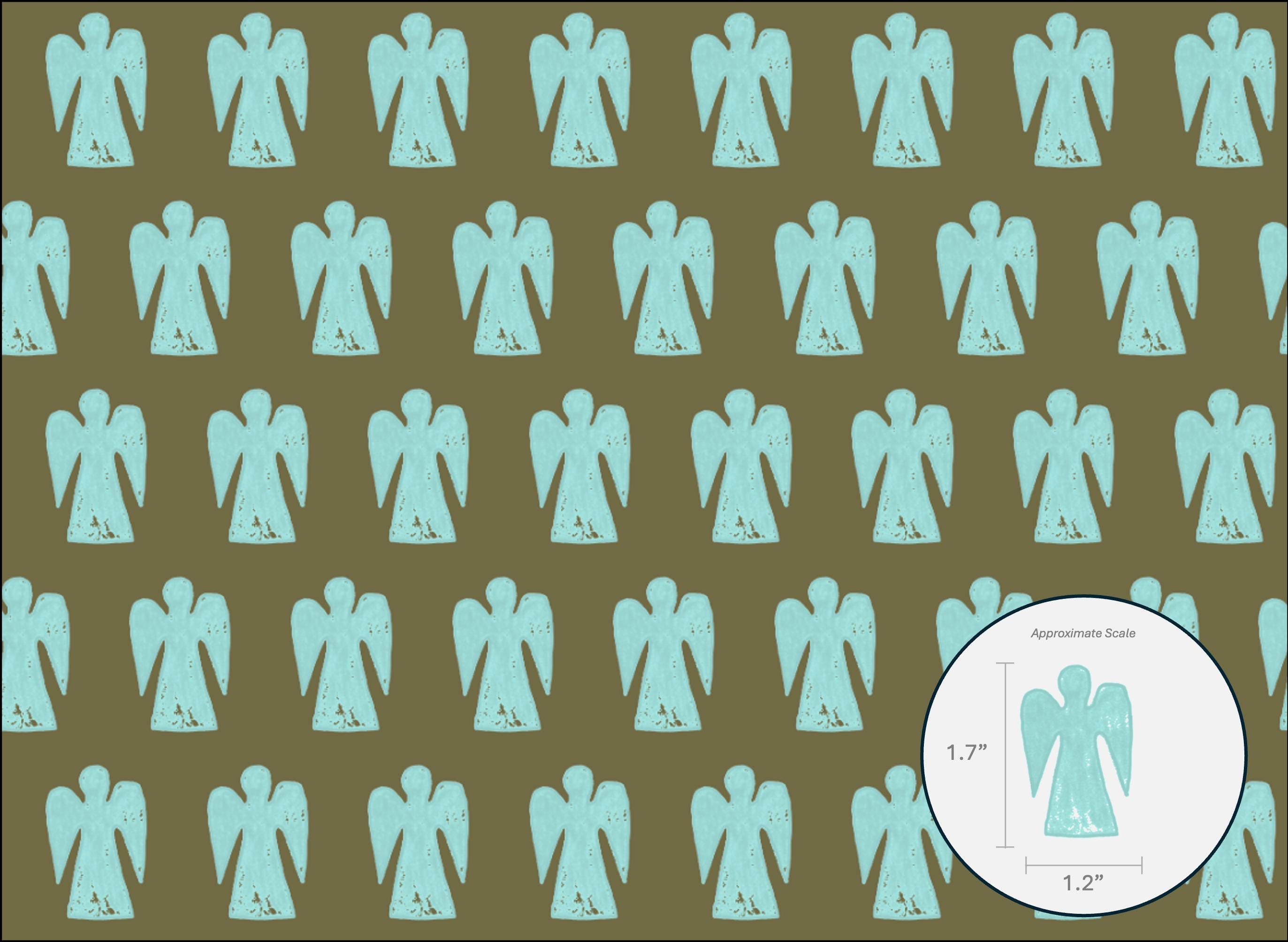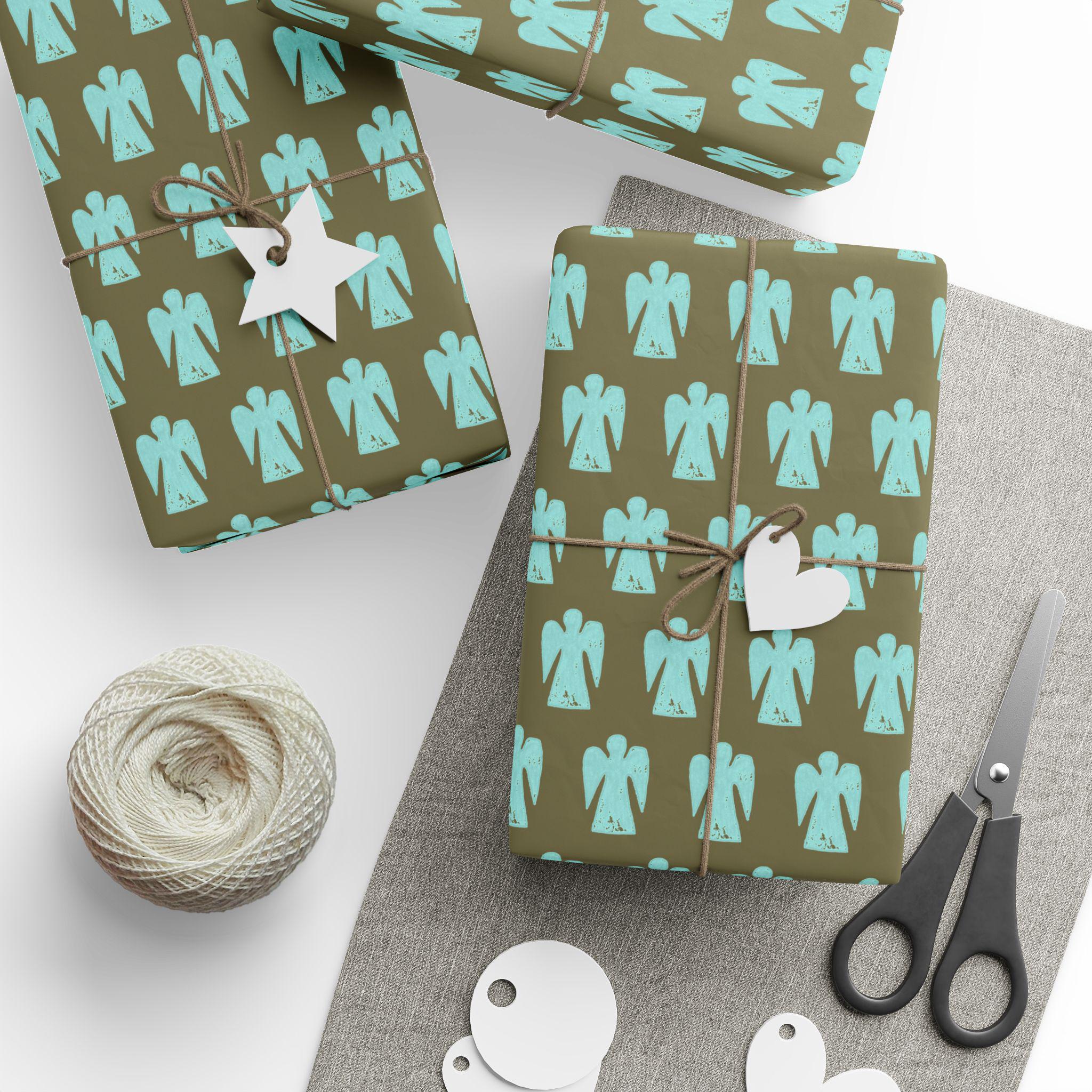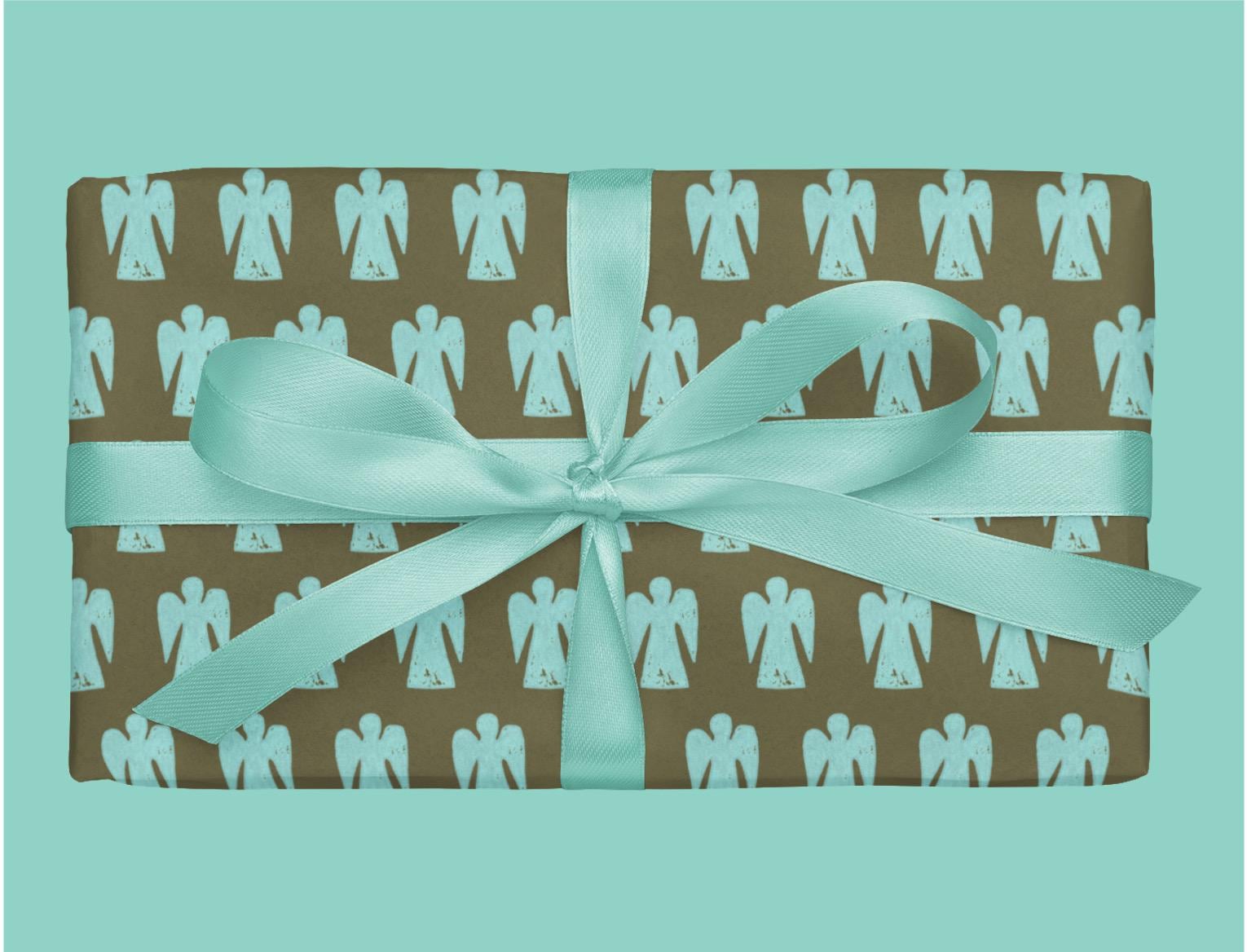Make your gift-giving special and unique with our hand-sketched patterns and curated solid gift wrap. This fun Angel pattern in Poolside with a Cargo background can be paired with a solid, or used as a stand-alone paper with a nice, textured ribbon. All purchases come with personalized support and color consultation upon request. Our designs are inspired by everyday objects, hand-drawn, digitalized and worked into a simple, yet elegant pattern. Note that our gift wrap is printed with white space and a QR code at the beginning of the roll.