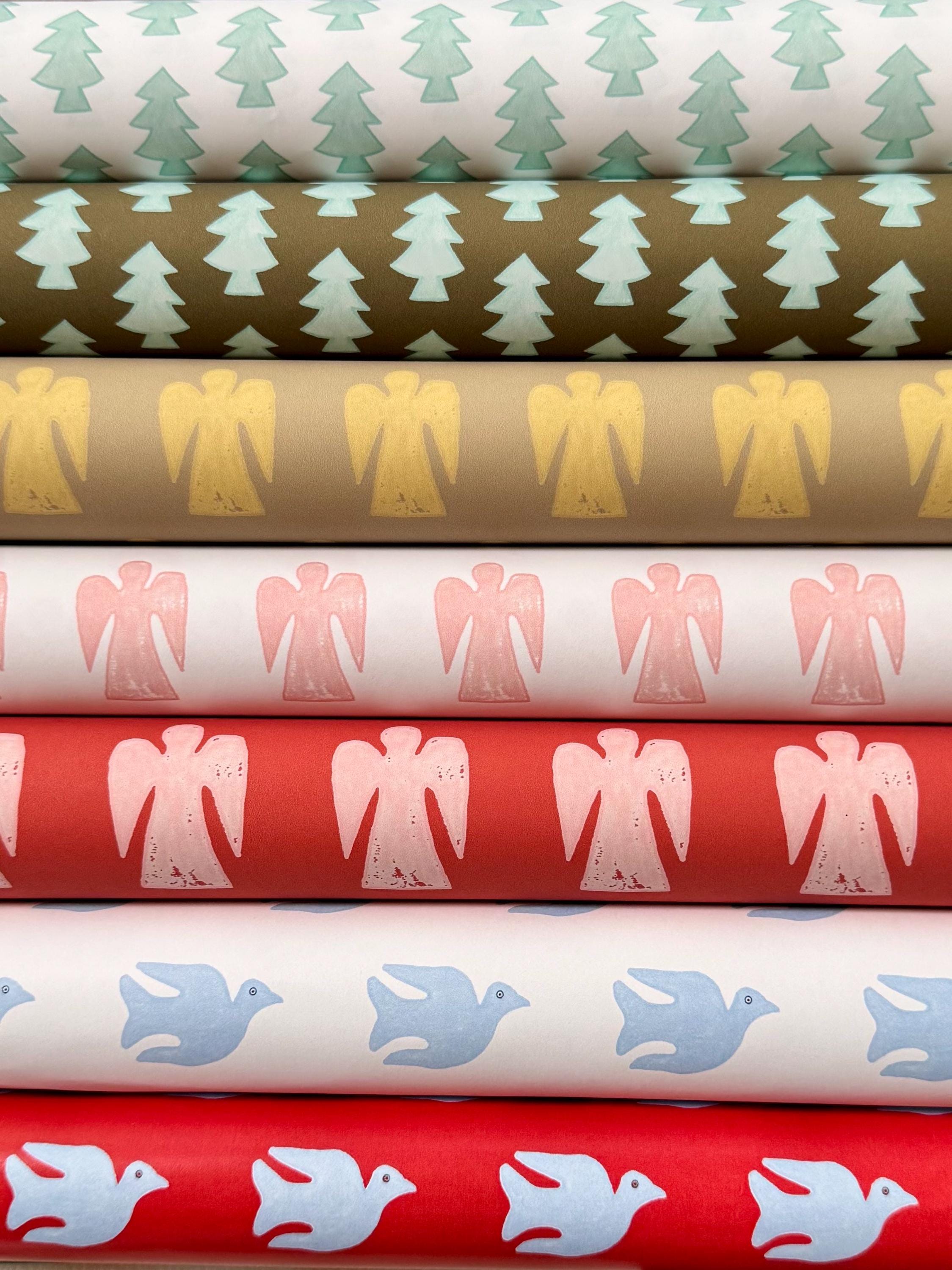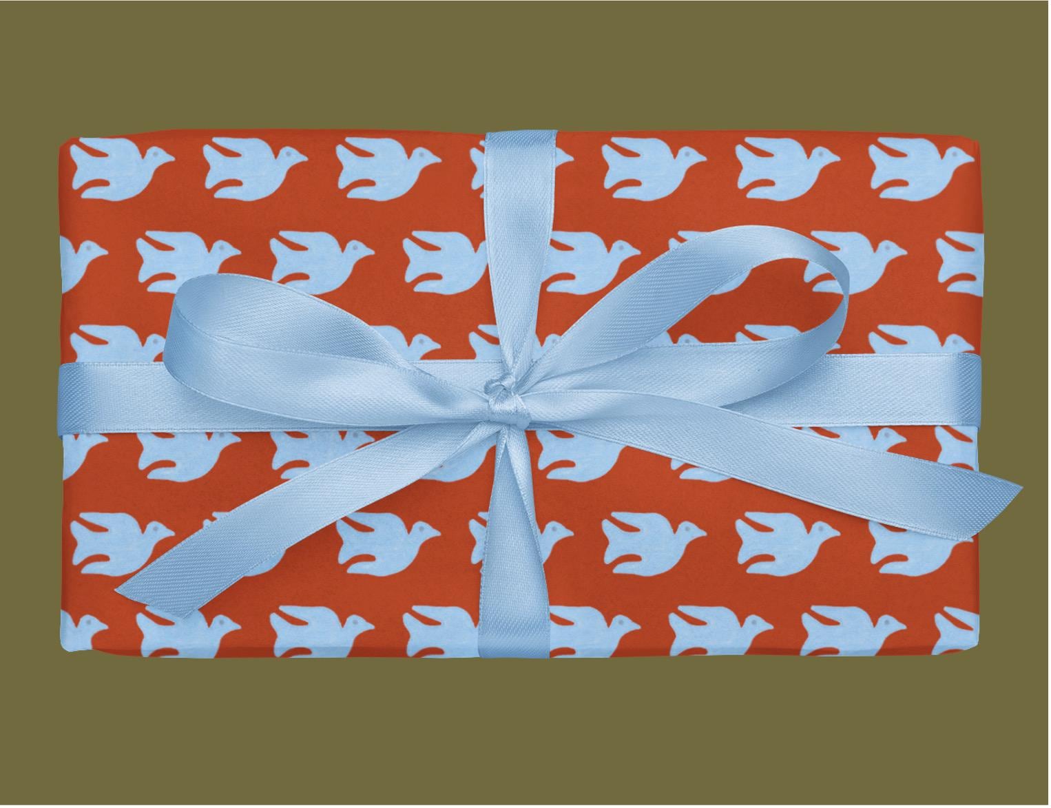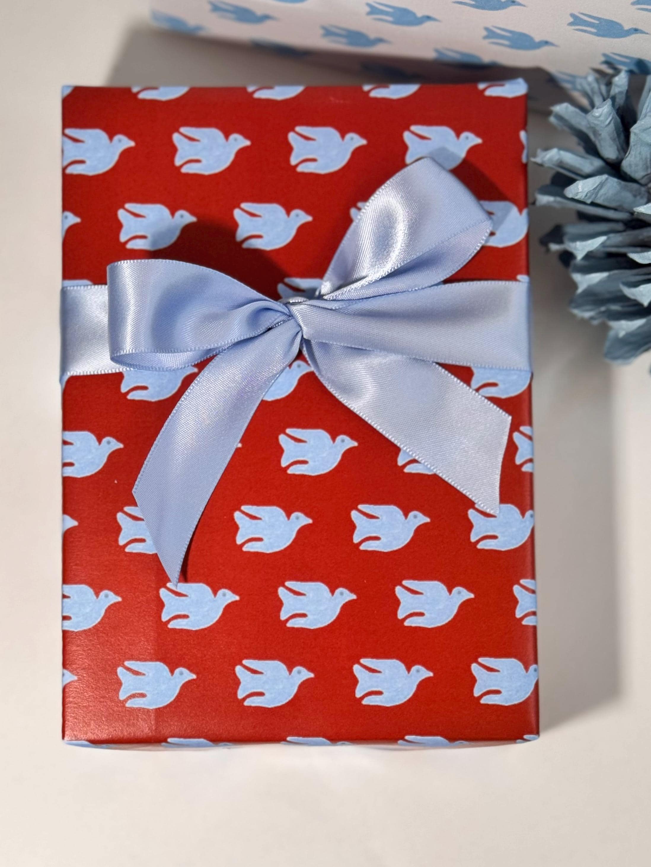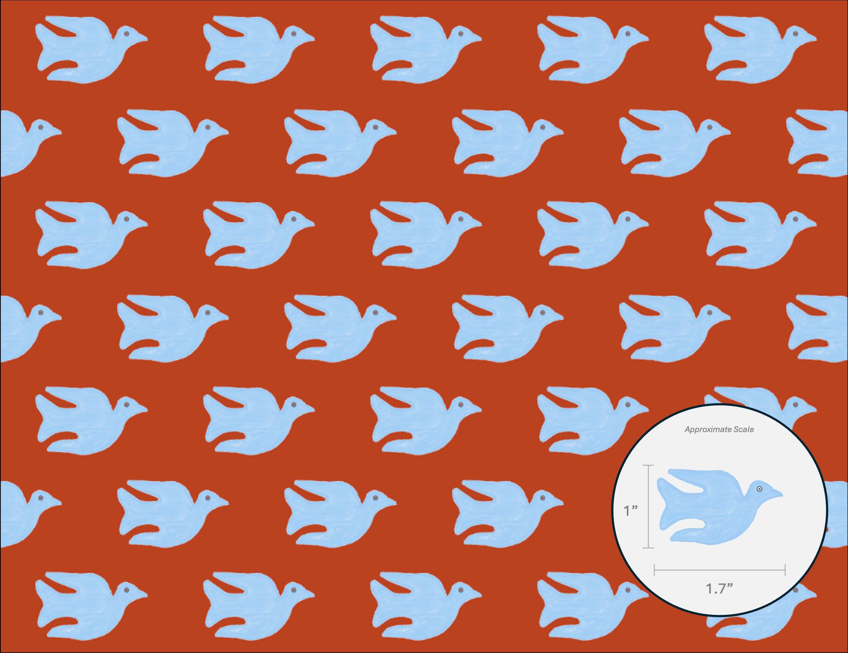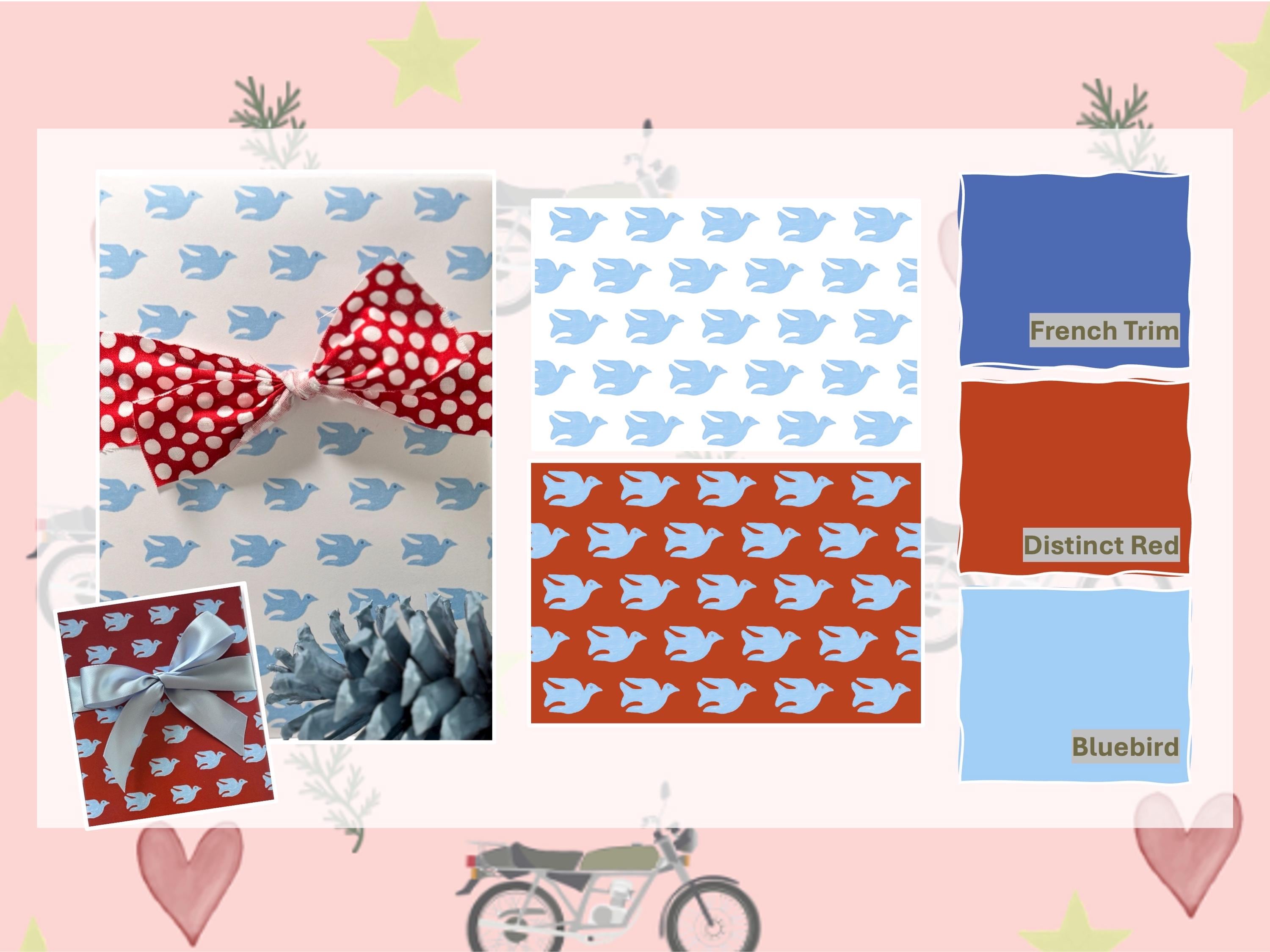 Make your gift-giving special and unique with our hand-sketched patterns and curated solid gift wrap. Our bird pattern in French Trim blue with a Distinction Red background can be paired with a solid, or used as a stand-alone paper with a nice, textured ribbon. All purchases come with personalized support and color consultation upon request. Our designs are inspired by everyday objects, hand-drawn, digitalized and worked into a simple, yet elegant pattern.